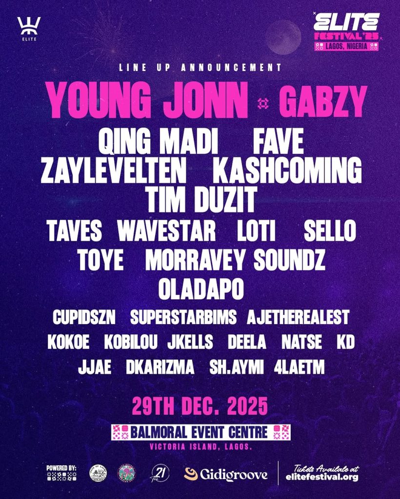Positioned as a high-calibre cultural moment, Elite Festival 2025 blends premium production, immersive audio-visual experiences, and Lagos’ festive December energy. The festival aims to deliver more than a concert; offering a culturally resonant experience that reflects the global rise of African music and celebrates diaspora influence, youth culture, and creative excellence.